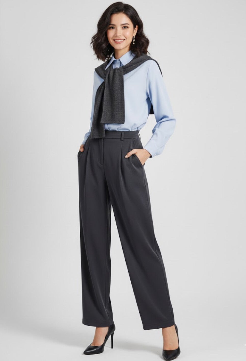 This women’s casual two-piece set features a romantic long-sleeve shirt paired with matching pants for an effortlessly chic look. Designed with soft, flowing fabric, the shirt drapes beautifully while offering all-day comfort. The coordinating pants provide a relaxed yet polished fit, making this set perfect for casual outings, brunch dates, or everyday wear. Stylish and versatile, it can be worn together or mixed and matched with other wardrobe favorites.