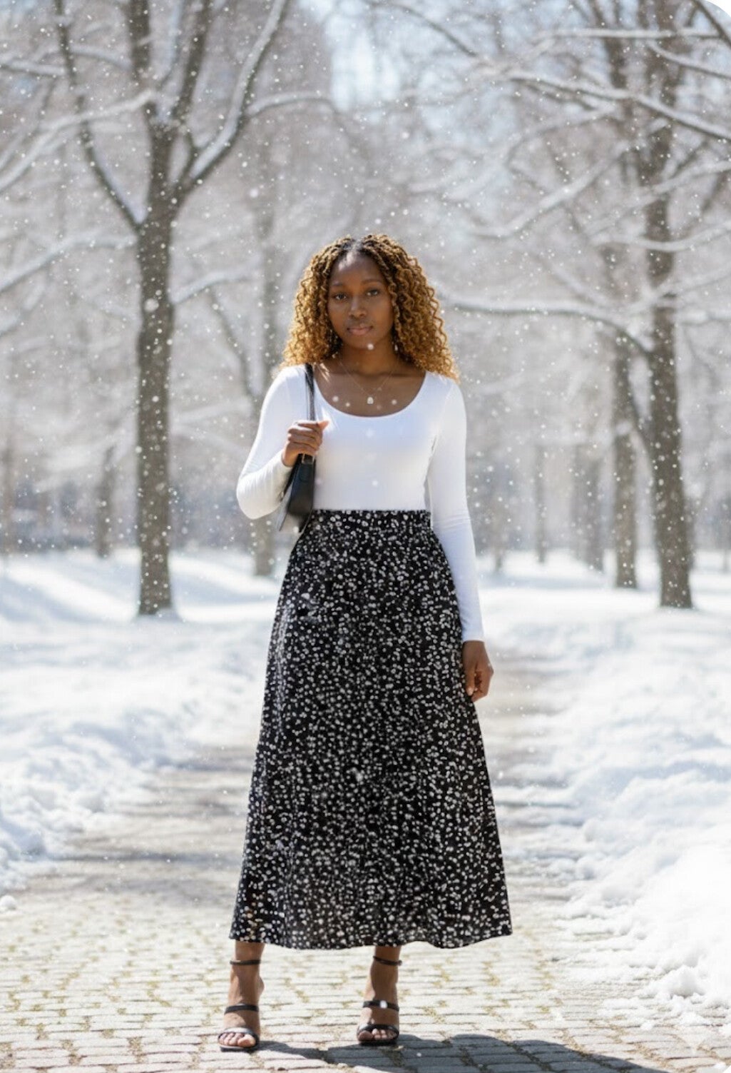 Crafted from lightweight, breathable fabric, this set transitions seamlessly through spring, summer, and autumn. The floral skirt adds a soft, romantic touch, while the solid-color jumpsuit keeps the look balanced and modern. Wear the pieces together for a complete outfit or style them separately for more versatility.