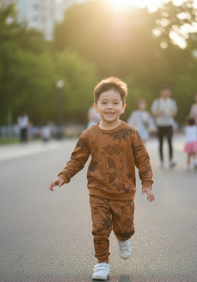 The coordinated top and matching bottoms create a stylish, ready-to-wear look that’s both fun and practical. Easy to pair with sneakers or jackets, this dinosaur-themed set is sure to become a favorite in his wardrobe.