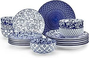 Vancasso Selene Series 18-Piece Dinnerware Set for 6 People Celadón Porcelain Plates and Bowls, Modern Blue and White Design